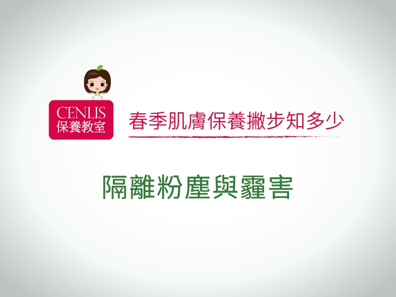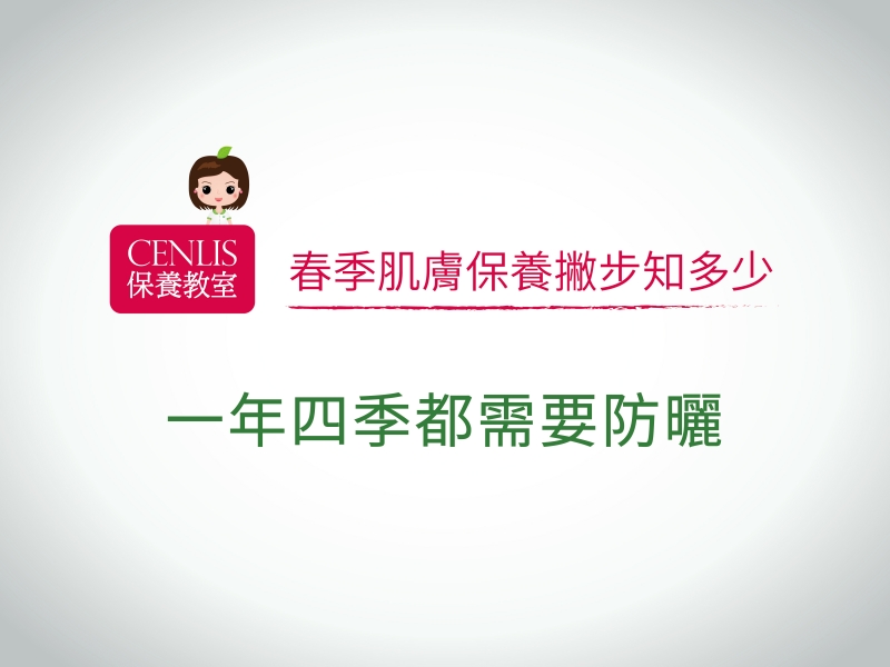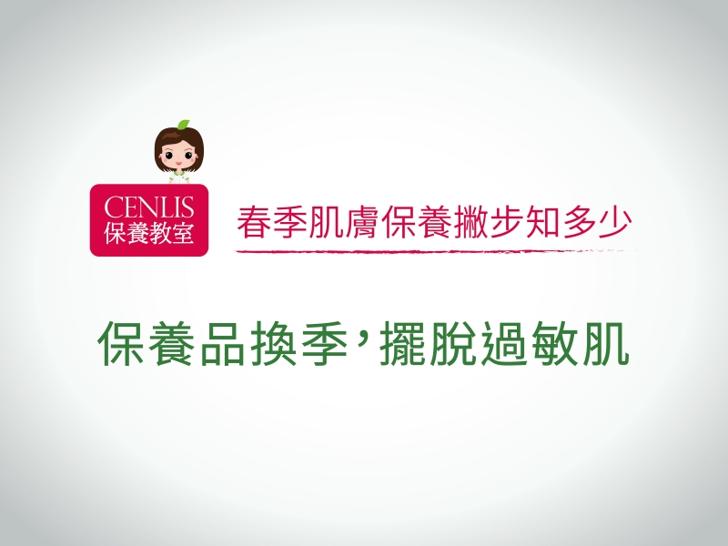 春天到來,天氣逐漸溫暖起來,這幾年來氣候變遷大,常常有一些氣候異常的狀況,氣候的異常變化也會影響到肌膚的保養。冬季到春季的肌膚保養也是要很謹慎的注意唷!以下是cenlis 整理出在春季做肌膚保養的重點:
