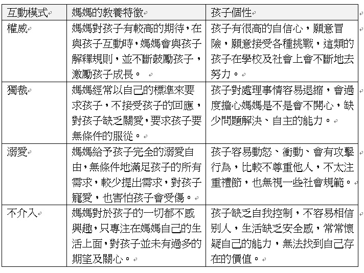 許多研究都有發現親子相處模式可以促進孩子的個人健康的發展,媽媽與孩子互動的教養特徵會持續影響到孩子成人。而到底媽媽的教養特徵,是怎麼影響孩子呢?