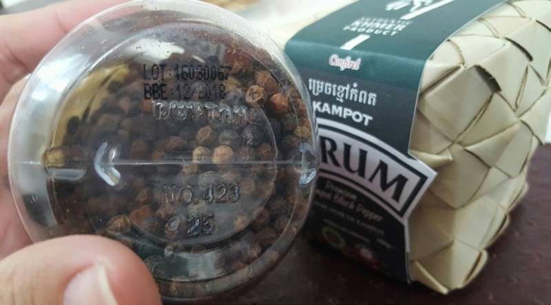 柬埔寨貢布省所產的胡椒長久以來就是柬埔寨的特產,吃起來非常香。市場有賣黑、白及紅胡椒粒,各具特色,回去自己研磨最佳,但也可以買已經磨好的胡椒粉。