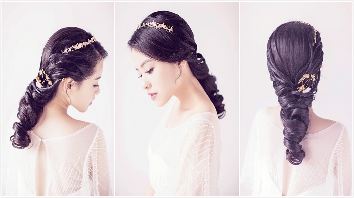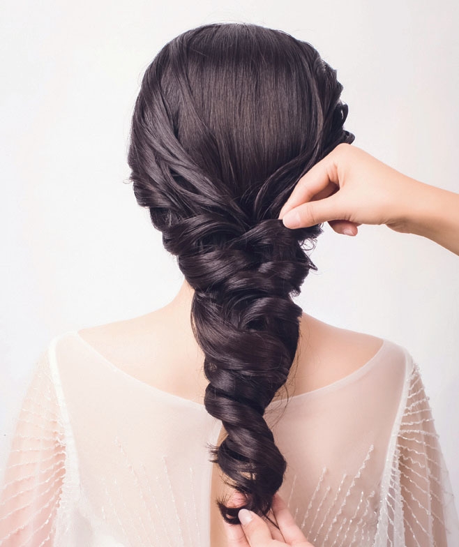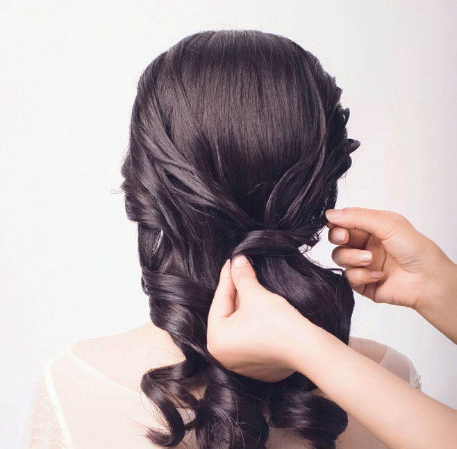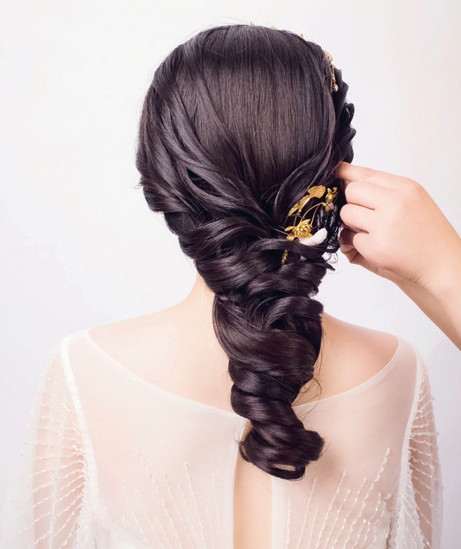 擰轉手法在新娘髮型中的運用較為常見,其特點主要是有利於將髮型營造出紋理效果,如同編髮一般,卻又比編髮效果更加蓬鬆而富有層次感,使浪漫的感覺呼之欲出。