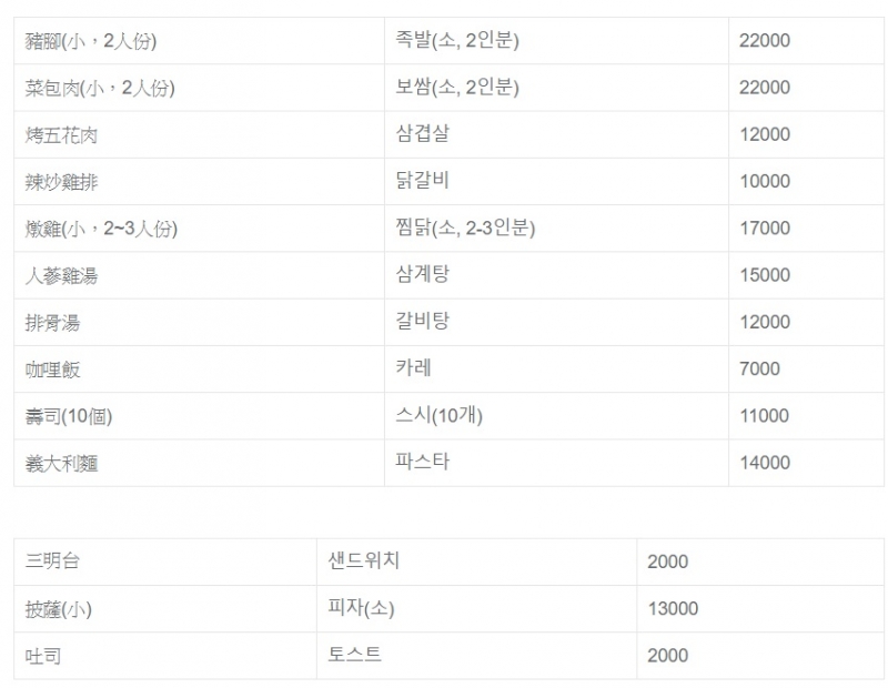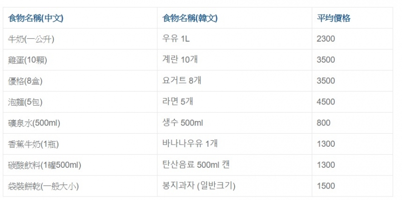 以下表為基準,可以判斷出大部分的食物是偏貴,還是偏平價!