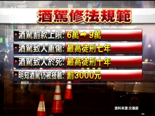 酒駕撞死無辜生命案件層出不窮,駕駛飲酒作樂卻帶來他人慘痛的代價,造成了多少家庭的破碎,引起全民共憤、法所不容。終於,馬總統怒斥「酒後駕車是用最文明的器材,做最野蠻的事,能說沒有故意嗎?」交通部宣告「台灣酒駕零容忍時代」來臨了,在六月中修訂新的酒駕取締標準、執法上路,宣示了嚴抓酒駕的決心,這也是全球最嚴的取締標準。