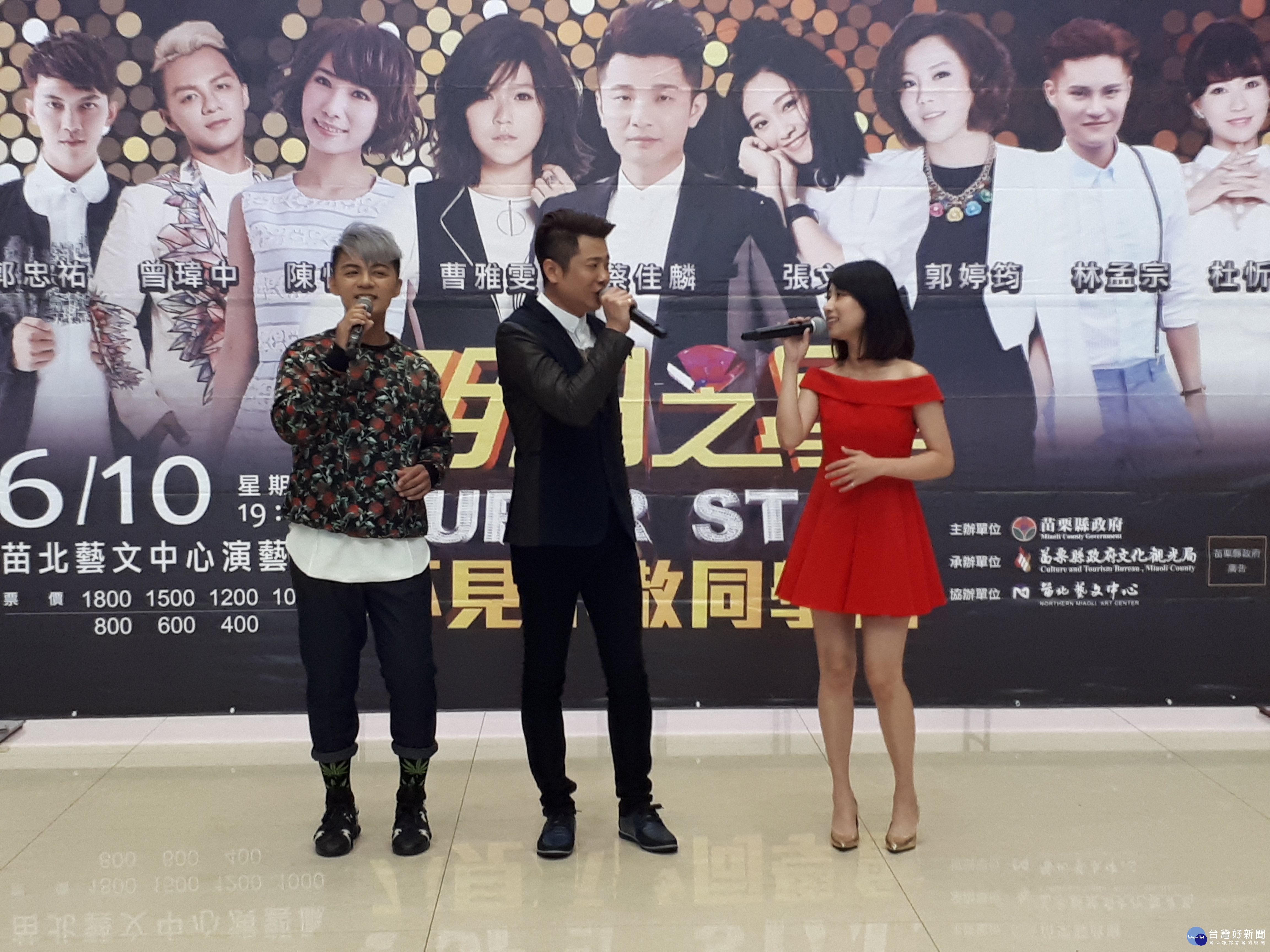 昨天上午,縣長徐耀昌與文化觀光局長林彥甫、苗北藝文中心藝術總監吳博滿等人在縣府大廳召開「樂動苗北」記者會,並邀請明日之星人氣歌手蔡佳麟、陳怡婷、曾偉中等三人合唱一首輕快歌曲「人情味」,為演唱會暖身,歡迎喜愛「明日之星」的鄉親朋友踴躍購票欣賞。
