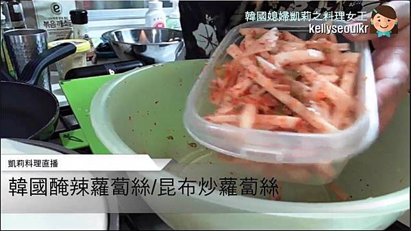 食材: 蘿蔔 200g, 大蔥 1小根, 蒜泥 1/2匙, 糖1/2匙, 辣椒粉1湯匙, 蝦醬1湯匙, 白芝麻(適量), 鹽巴(可加可不加)