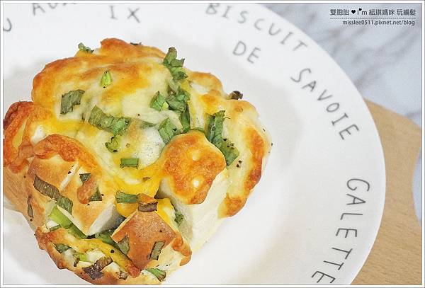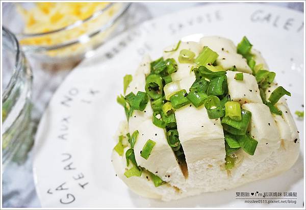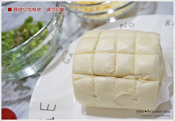 然後將蔥花塞到饅頭方格縫縫中! (能塞多少儘量塞,滿滿蔥花才好吃)