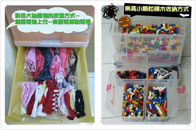 其他部分可以參考左左右右媽咪的文章喔!GIGI的媽咪(ANGELA),對於兒童物品收納,很喜歡用抽屜和收納箱來玩收納且GIGI是個很喜歡開開關關抽屜的小孩,所以運用抽屜收納,正好滿足她的需求且讓GIGI可以很輕鬆的完成收納工作,更可以訓練GIGI養成隨手收納的好習慣什麼物品該住哪個家,都有固定的位置,不會有找不到家流浪在外的事件發生果真流浪在外,肯定會被爸爸媽媽扔到垃圾桶去~