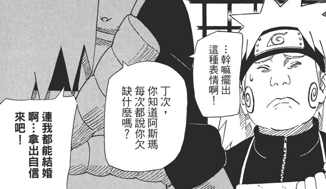 那麽事情就這麽成了:丁次後來可以隨意發動蝶彈暴擊,身體變瘦後,就成了卡魯伊口中又高又帥又有錢的存在(畢竟是秋道家家主),兩個人一拍即合。