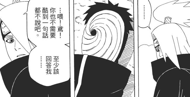 在蠍死後,帶土偽裝成阿飛,加入曉,跟迪達拉一起執行抓捕尾獸的任務。這兩個人都是逗比,一路上跟說相聲一樣,說說笑笑挺有意思。