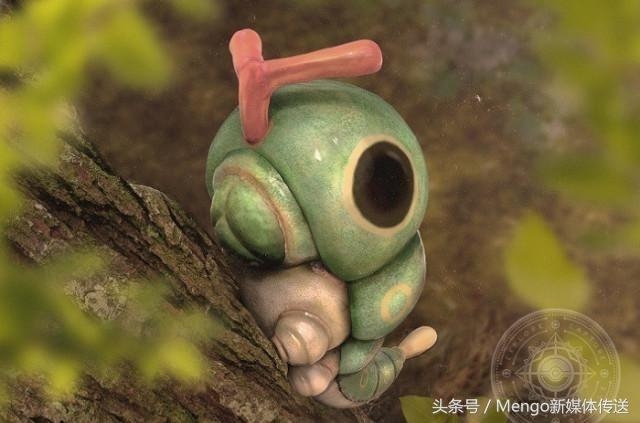 寫實版的綠毛蟲看起來就跟一般的毛毛蟲一樣,相信進化後的巴大蝶也會像現實中的蝴蝶吧~