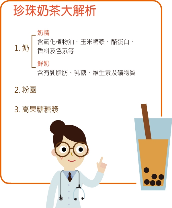 珍珠奶茶的3大靈魂主角:粉圓、奶精、高果糖糖漿,到底有什麼迷人的魅力,足以讓許多人成為它的頭號粉絲呢?除了高果糖糖漿帶給人們上癮的感覺之外,再來就是各店家所主打的粉圓口感各有各自的擁護者,但是更有人戲稱這珍珠奶茶不過就是杯「化學奶茶」,而為何會有這個稱號出現呢?主要就是「奶精」的這個成分。