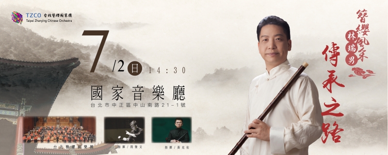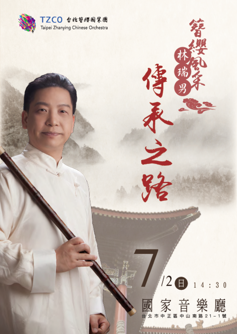 台灣笛藝名家林瑞男攜手台北簪纓國樂團,由藝術總監黃光佑指揮共同擔綱演出,將在台北國家音樂廳,於7月2日為台灣樂壇帶來一場竹笛傳承藝術的精彩對話。