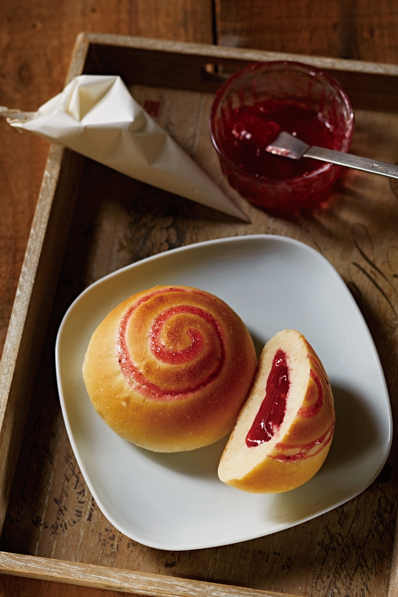 盛產草莓的春季,讀者也許會想使用自製的草莓果醬來做這款麵包,愛與恨老師會建議在自製的草莓果醬中,增加如蘋果泥等富含果膠的食材,讓果醬的濃稠度提高,較容易包餡。同時使用自製草莓醬當成內餡時,收口一定要小心處理,才不會爆漿。