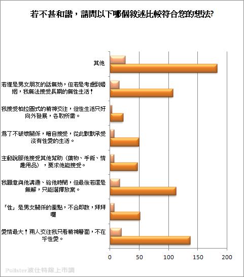 波仕特線上市調進行市調,對民眾與另一半性生活的和諧美滿之滿意度進行調查,並且在不和諧的狀況下,以何態度面對?
