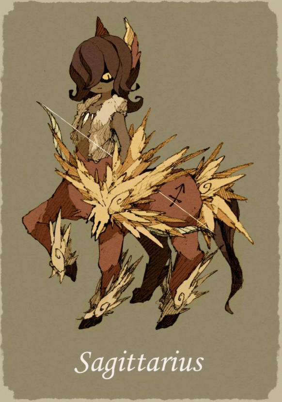 這眼神超、超有殺氣啊(|||゚д゚)射手座的造型很明顯就是神話裡的生物半人馬~