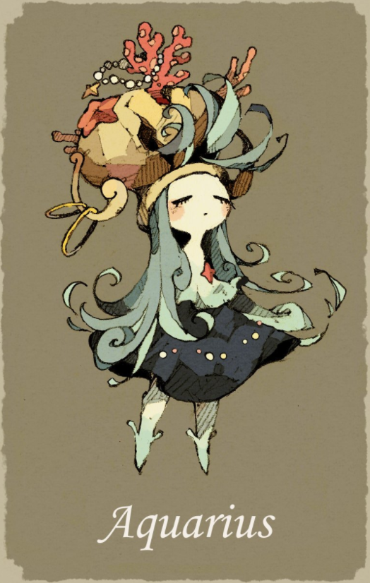 水瓶座小精靈有著一頭波浪般的頭髮,頭上的裝飾感覺像是珊瑚礁?