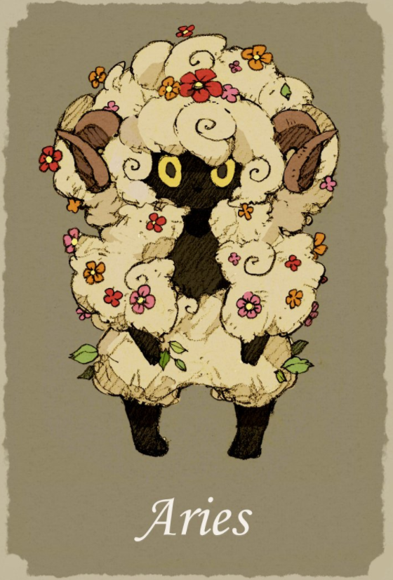 被蓬鬆的羊毛和小花朵包圍的牡羊座,看起來就像是森林裡出沒的森之小妖精!