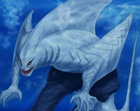 合體後鬼鮫會變成半人半鯊魚的存在,也就是傳說中沒有尾巴的尾獸,因為這個形態下他有巨量查克拉,而且還能在身體碰到敵人的時候吸收敵人的查克拉,真正做到了查克拉量匹敵尾獸。
