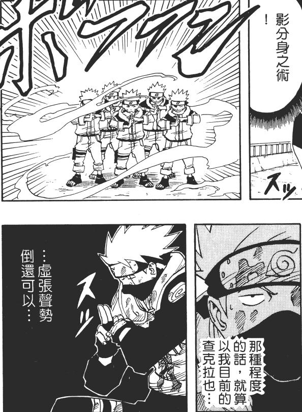 跟再不斬戰鬥後,卡卡西甚至已經沒有辦法進行影分身,只能用普通分身嚇唬剩下的小嘍囉武士。