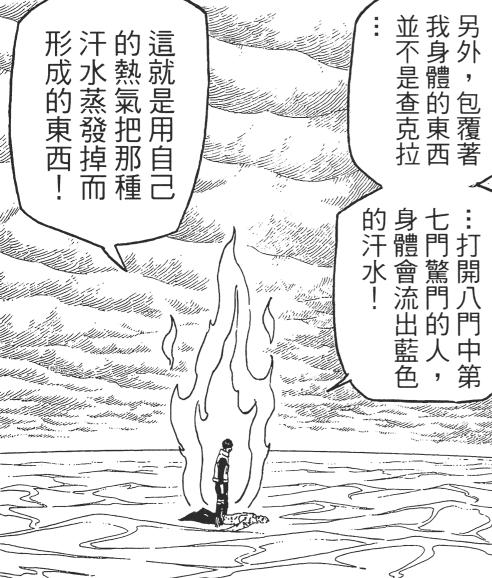 還真不是!關於八門遁甲的問題,阿凱已經解釋過,外面看起來像是查克拉燃燒的效果,其實是汗液的蒸汽,打開七門是藍色,打開八門是紅色。