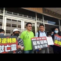 12日上午,10多名被害人手持「逆轉勝告慰亡靈,謝天謝司法還我公道,陳逸杰、湯小玲、陳登廷惡有惡報」的標語,在高院前召開記者會,感謝司法。