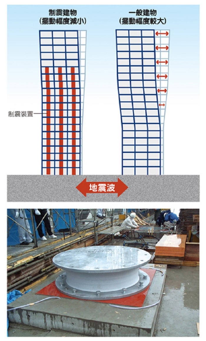 「制震設計」是在建築的骨架內安裝一種或多種的制震元件,目的是希望地震來襲時,制震器會發揮功能吸收能量,控制搖晃的建築,減低不舒適感。