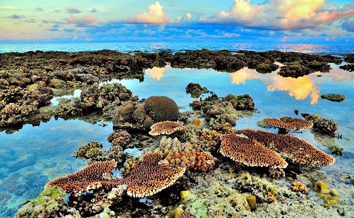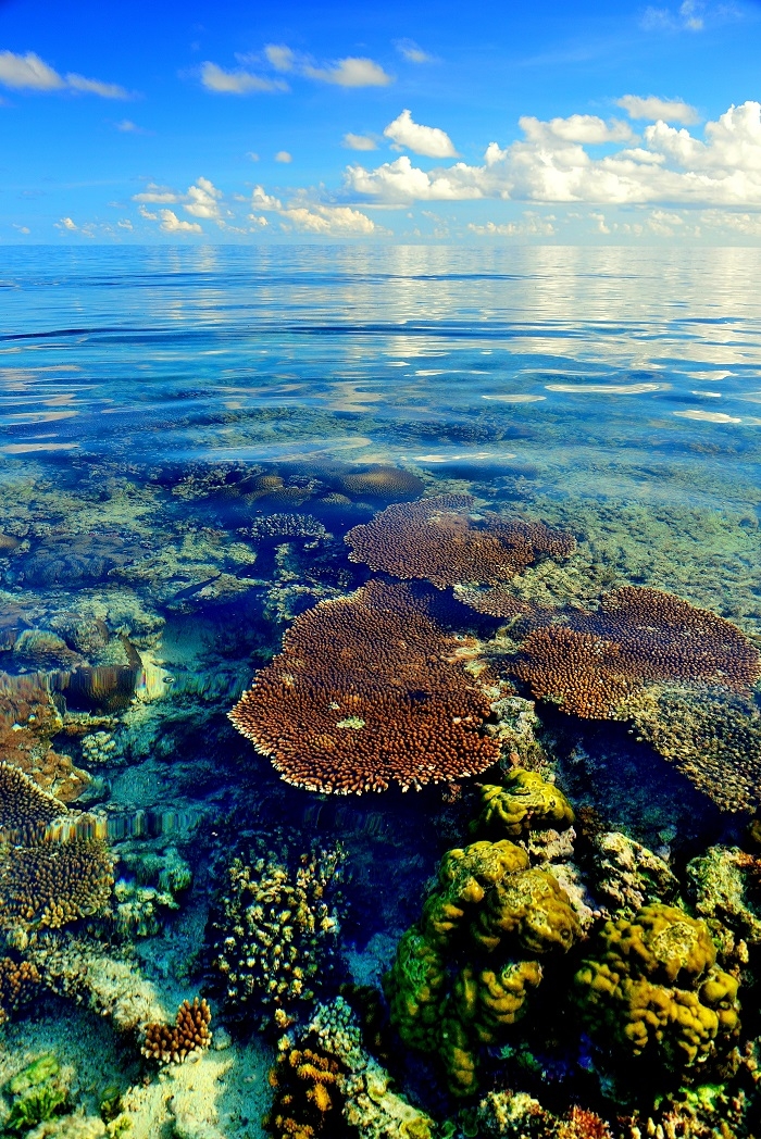 民國102年5月26日,這天適逢太平島最大退潮,傍晚先來到東南岸,瞬間被眼前的景象吸引──活生生、繽紛絢爛的珊瑚,就這樣從海平面探出頭來,這無疑是我心目中的新世界第八大奇景,更是不諳水性朋友的一大福音,不用咬呼吸管、不用戴蛙鏡,只要在岸邊彎下腰,就可清楚看見珊瑚的美麗蹤跡。