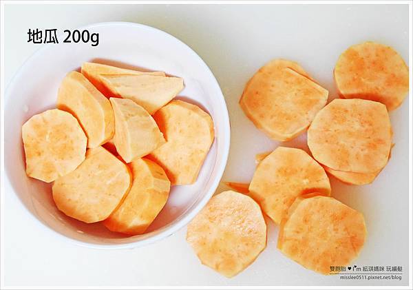 地瓜削皮洗淨後,請切薄片比較好蒸熟軟化。