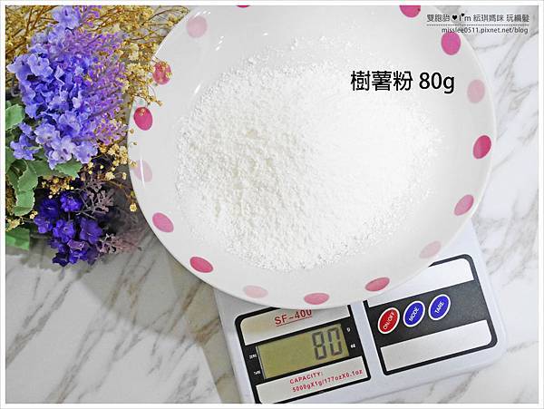 最後倒入一些樹薯粉 (地瓜粉),以防止沾黏!