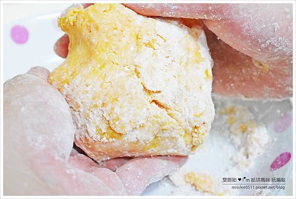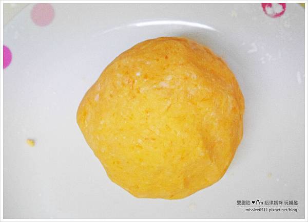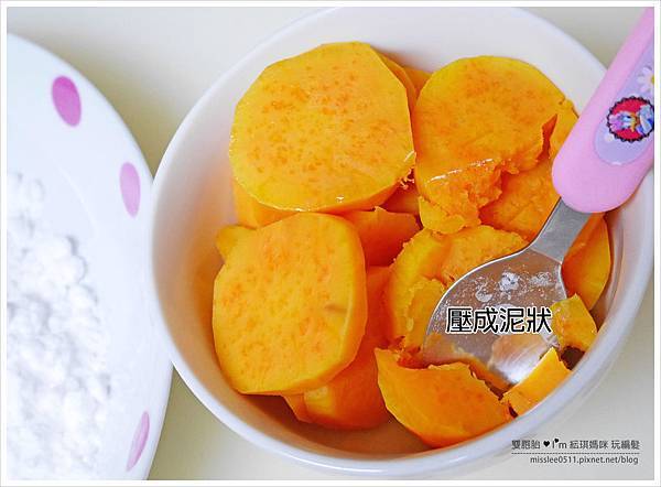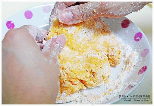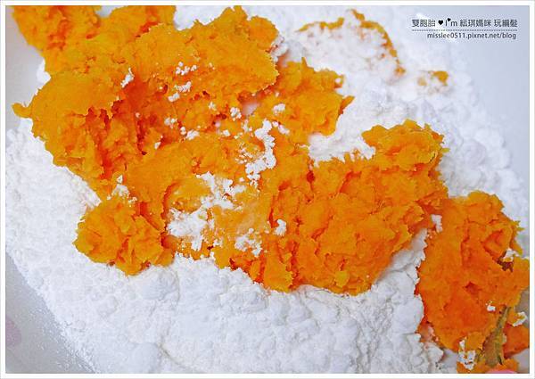 並慢慢將粉類溶合入地瓜中。