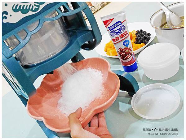 自已備的料也比較不會甜膩過了頭!! 我們家的刨冰機很復古、很酷吧!!