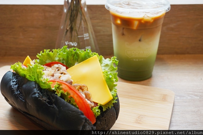 WooWho嗚鬍的漢堡麵包是他們獨家特製的竹炭漢堡 , 吃起來會比較健康