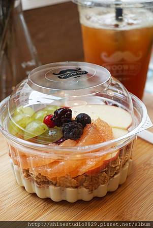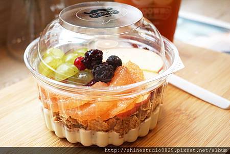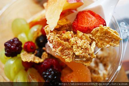 水果的甜 , 在參雜了穀片和果乾的脆 , 和底層綿密滑順的優格相互搭配出層層的口感 ,
