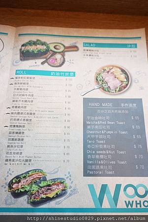 WooWho嗚鬍供應的餐點其實滿豐富的 , 以輕食為主從甜的水果堡到鹹食類型的奶油竹炭堡