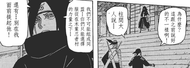 所以斑私下裡對另外所有忍村表達出的強硬立場,違背初代本意的同時,也讓各大忍村感覺到了屈辱。