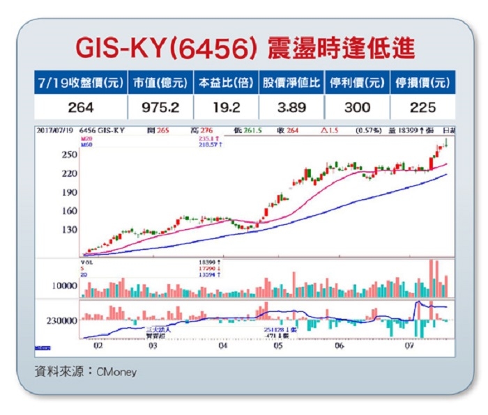 業成GIS-KY(6456)是鴻海集團旗下的觸控面板模組廠,產品營收比重為︰智慧型手機用觸控面板佔50%、平板電腦用觸控面板佔40%、其他佔10%。