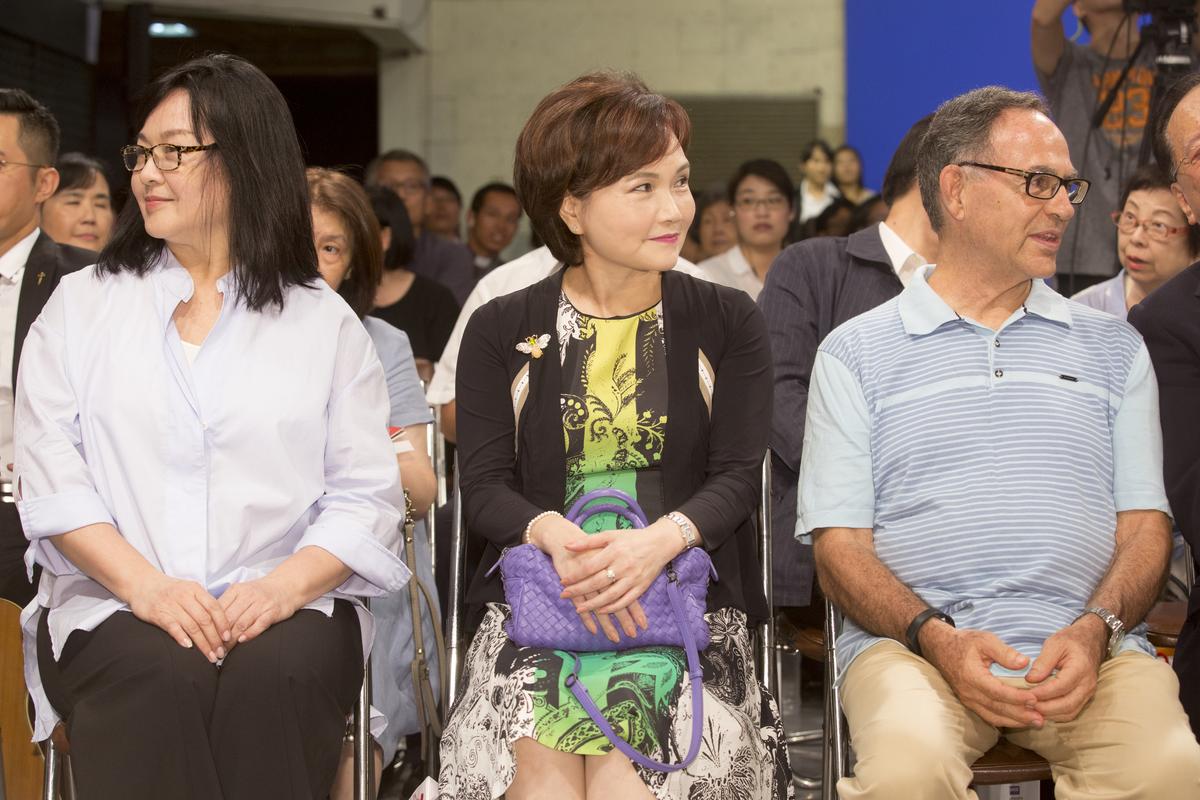 年近70歲的崔苔菁,身穿淡藍色襯衫與黑色長褲、白布鞋輕便現身,體重目測約有70公斤以上,一上台致詞她便喊話:「因為丁神父,我今天拋頭露面。」訴說當年2人曾談心:「那時丁神父還是修士,他指導我唱歌,我問他,你確定要做神父嗎,若當神父,就不能愛一個人,沒想到他回答我:『男女的情愛是很誘惑的,但我做神父可以愛所有人。』」問崔苔菁有沒有喜歡過丁松筠,她則說:「大家都愛丁神父。」