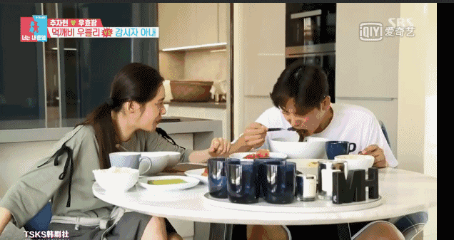 敏感的秋瓷炫也會有些不安全感,當說到老公要出軌了怎麼辦的時候,於曉光用不熟練的韓語說:“你死我也死”,真是逗趣又甜蜜。