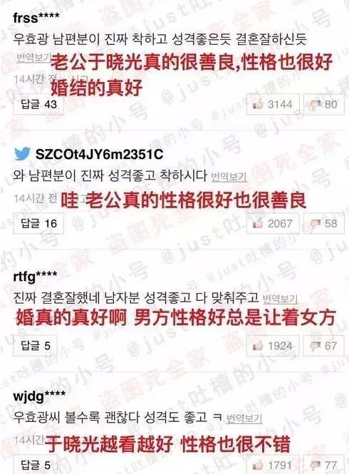 在節目中,兩人廣撒狗糧,於曉光更是顯示了自己帥氣和體貼的一面,跟韓國人展示了中國男人的霸氣和溫柔。他們的幸福到讓韓國女人看了都羨慕死了。