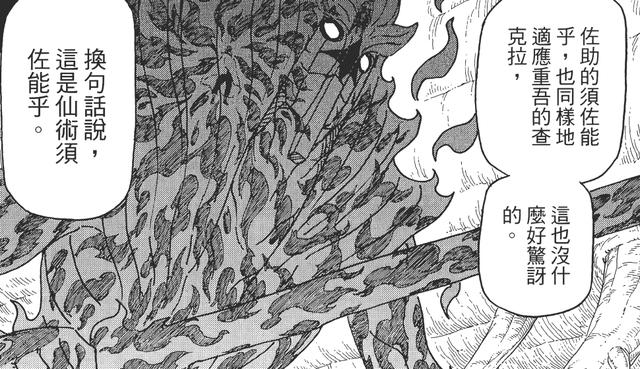 更想不到的是,佐助這種從來沒接觸過仙術的人,也被岸本以「咒印也是出自重吾的仙術體質」為由,給佐助的須佐加上了仙術屬性。這個就稍微有點牽強了,最後鳴人和佐助二人合力擊傷帶土,把帶土體內的尾獸拉出來了。