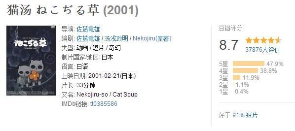 而它在2001年還被改編成了動畫,片長雖然只有半個小時,可時至今日,評分依舊高達8.7——