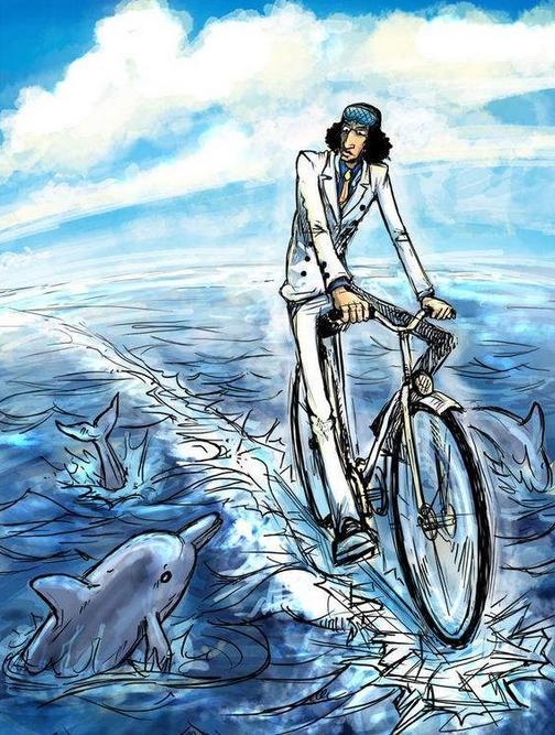 青雉也經常在海上碰到其他動物,會禮貌地打招呼按車鈴,很遵守交通規則……