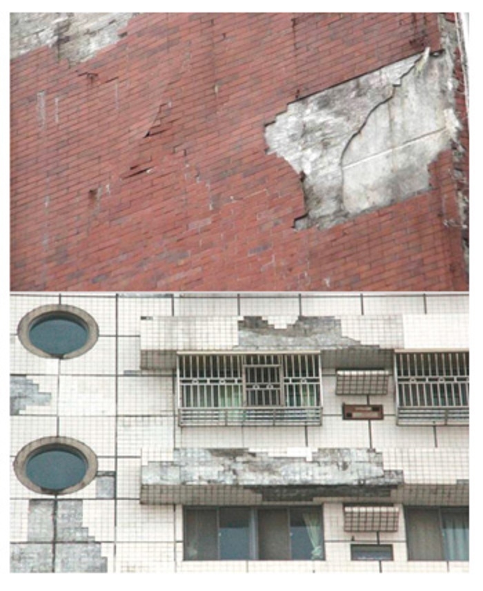 外牆磁磚脫落並非單純只是接著劑脫落或磁磚品質不良造成,更有可能是結構體出問題而衍生出牆壁裂縫、滲水、壁癌及漏水,先解決結構上的問題再處理外牆才是正確的作法。