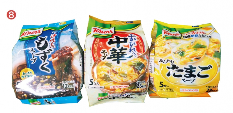 跟泡麵一樣,加入熱水就能馬上享用的「インスタントスープ」,市面上品牌不少,我個人偏好AJINOMOTO 推出的系列商品,特別是蛋花湯( たまごスープ),在我家屬於常備食品,隨時都有,足以應付不時之需。