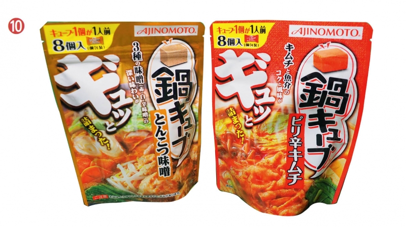 AJINOMOTO 推出的方便湯塊,不同於台灣常見的只有雞湯等基本口味,這款有泡菜鍋、雞白湯、豚骨味噌等調製好的口味,可以利用它作成火鍋、湯麵、或是湯品,非常方便。小家庭開伙必備好物,且口味多種,不會一下子就吃膩。