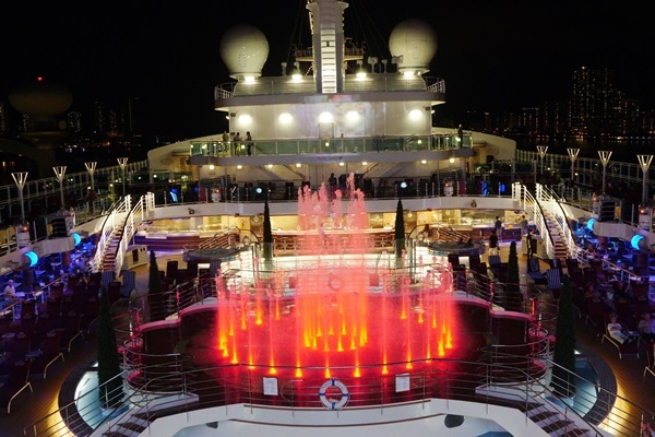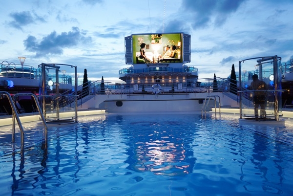 在盛世公主號上可以選擇泡在泳池裡,或是躺在池畔的躺椅上,輕鬆自在的來「星空電影院」看場電影,從早到晚播放不同的電影任君選擇,池畔貼心準備免費冰淇淋跟爆米花,讓旅客更有看電影的氣氛,看完電影別忘了留點時間給晚上限定的海上水舞秀,精彩又浪漫。