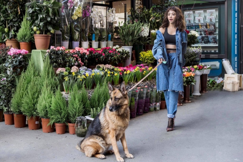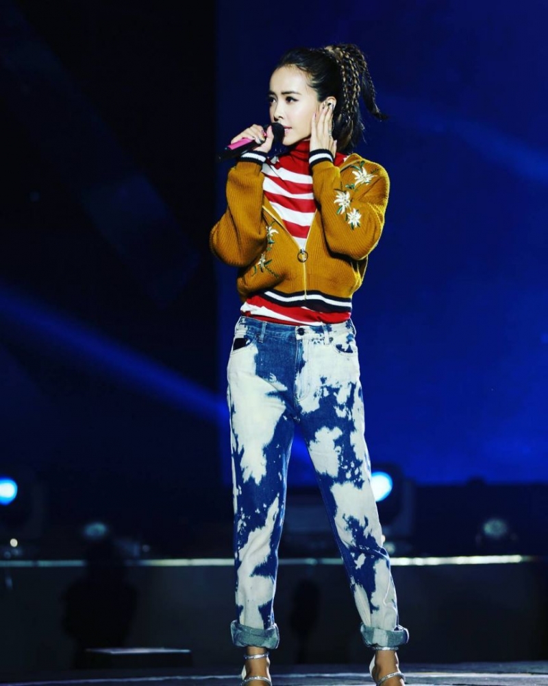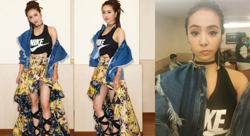 Jolin不但走在潮流前面,也很勇於嘗試新銳設計師的品牌,如這款來自烏克蘭的牛仔褲潮牌Ksenia Schnaider,特色就是像褲又像裙的層次感,讓平凡牛仔褲多了個性和獨特廓型,Jolin還在褲裡搭配網襪與Top運動上衣,展現力與美的強勢性感。
