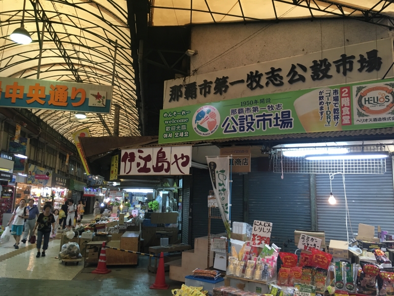 牧志市場一直是我很想走訪的景點之一,當時還沒出國就有做功課,要先走入市場本通。牧志市場分為兩層樓,市場範圍頗大,走往市場的每條通內都有搭遮雨棚,不用擔心下雨,是很細心的設施。