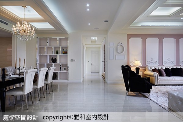 1. 雅硯設計在本案使用許多大理石、水晶燈、進口家飾…等建材,創造出一般住家難以企及的豪奢氣勢。