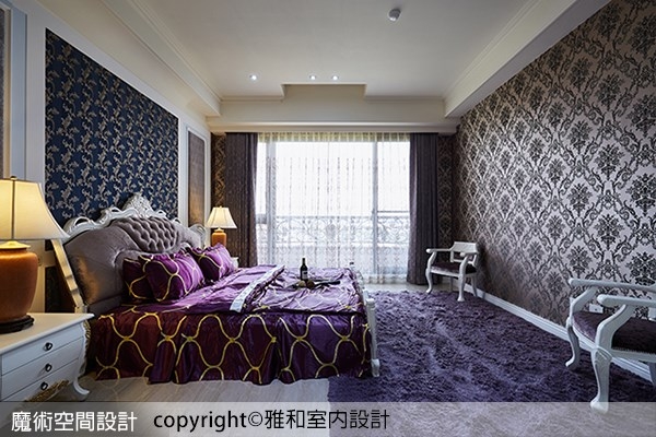 ▲臥室透過壁紙、地毯、窗簾、床單等單品,揮灑強烈且讓人印象深刻的色彩。