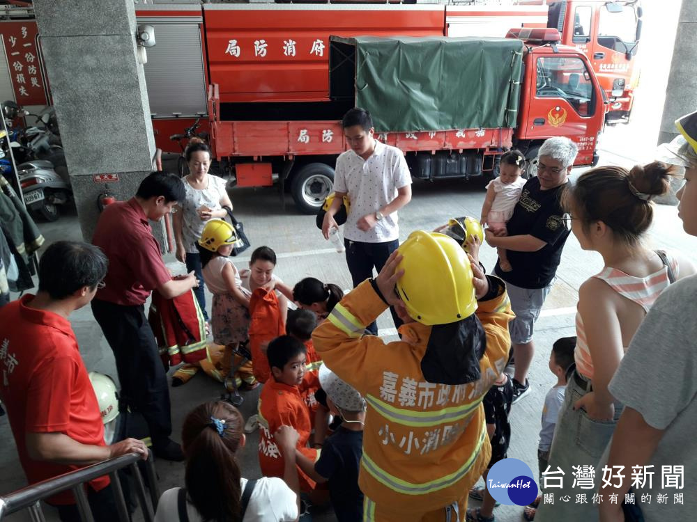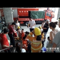 消防隊為了迎接這群嘉賓,特地設計了幾個關卡,有消防車介紹、消防衣穿戴、防災常識講解、救護宣導以及消防車射水體驗活動,讓親子們由體驗消防工作,能夠開啟兒童感官,進而學習到消防常識,帶給小朋友深刻印象,達到寓教於樂之效果。